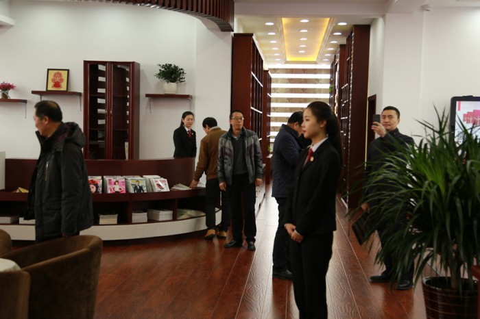 在讲解员的带领下,大家先后参观了二楼大厅浮雕、文化长廊、党团活动室、院史室、荣誉室和文化学习中心,详细了解了绥化中院近年来党建工作和文化建设工作开展情况,并对法院文化建设提出了合理化建议。在位于十二楼的文化学习中心,书画家们对高科技、便捷化的电子阅览设备和3D电影院表示称赞。