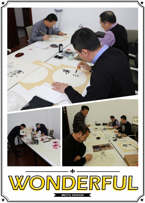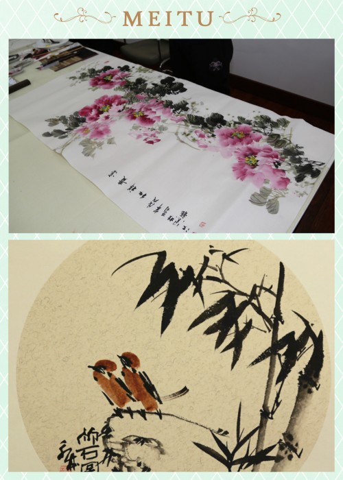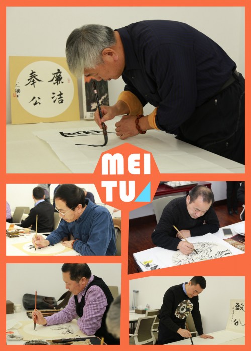 参观结束后,书画家们现场挥毫泼墨,写下了“初心”“崇德 尚法 守廉 致公”“厚德载物”等书法作品,并即兴创作了牡丹花、梅花、荷花、竹子等绘画作品。