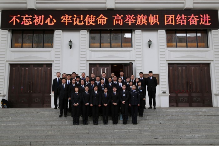 参观结束后,干警们怀揣着对抗联烈士们的崇敬和缅怀,在东北抗联博物馆前合影留念。