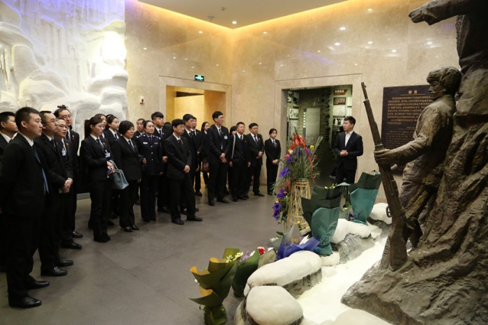 参观途中,干警们合唱了歌曲《松花江上》《红梅赞》《十送红军》,欣赏了红歌独唱《映山红》,6名干警分别讲述了革命烈士杨靖宇、赵尚志、赵一曼、李兆麟、陈翰章和八女投江的英雄事迹,烈士们不畏牺牲、不惧困难的革命信念和舍生精神深深地打动了每名干警。