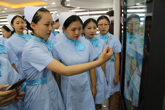 在集远程教育、网络学习等功能于一身的党群活动室(党员远程教育中心),师生们观看了“远教视界”栏目中的《十九大代表风采录——易连军》,易连军在护理道路上不畏困难、用爱心和汗水关爱失能老人的事迹让人动容。学生们纷纷表示,将以先进模范为榜样,在未来的护理岗位上以“爱心、耐心、细心、责任心”对待每一名患者,继承和发扬护理事业的光荣传统。