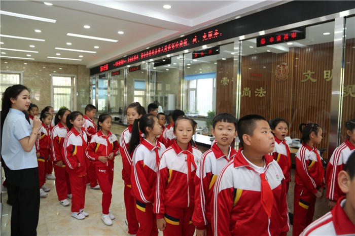 5月29日上午,育才小学的师生们早早来到法院门前,开始了这次别开生面的法治研学之旅。在法院讲解员的引领下,老师和学生们依次参观了主楼二楼大厅、文化长廊、院史室、荣誉室、党群活动中心(党员远程教育中心)、司法体能训练中心、信息宣传中心以及诉讼服务中心,感受绥化中院浓厚的法治氛围。