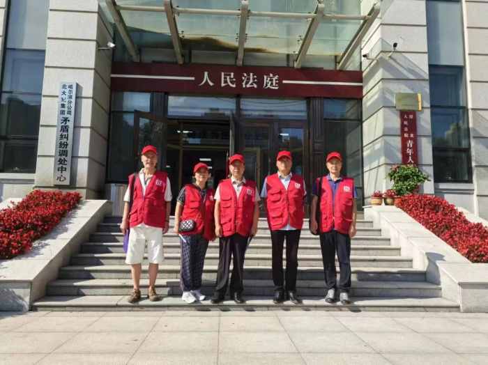 退休法官一行来到尚东辉煌城小区开展志愿服务,进行普法宣传和法律咨询。活动现场向群众发放了《中华人民共和国爱国主义教育法》《未成年人网络保护条例》《黑龙江省反家庭暴力条例》《“龙法和”云法庭操作指南》等宣传手册30余份,对前来咨询的群众,在厘清基本事实基础上,引导他们依法依规表达诉求。退休法官通过“答疑解惑+现场普法”的方式让群众在家门口“零距离”学习了法律知识,得到在场群众的一致好评。